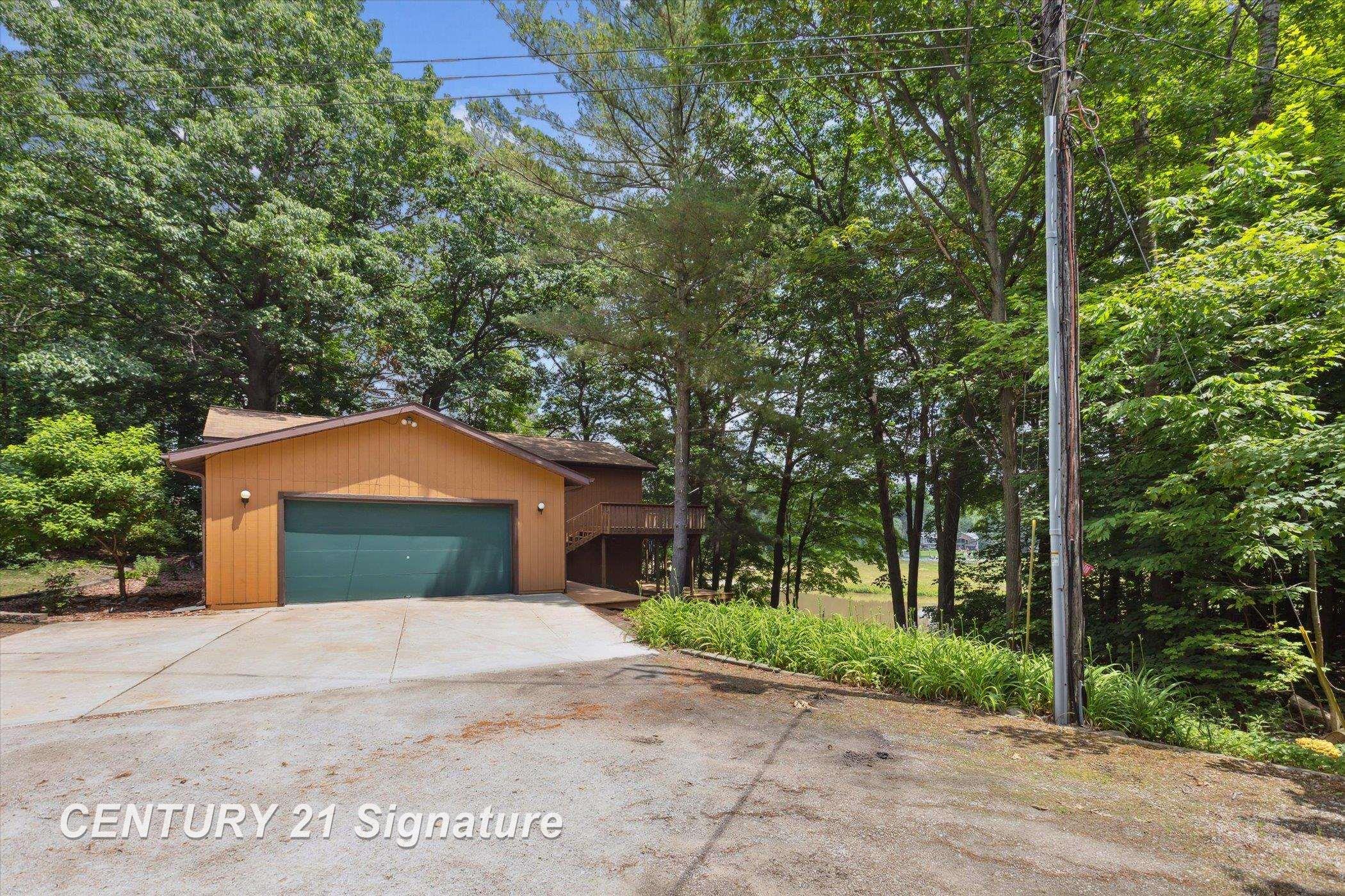Life of Leisure on Lake Sanford Rd! The captivating view from the main floor of this expansive 2200 sq feet home with abundant views of the water from all of the windows is liberating! There are 2 bedrooms on the main level with the master having an entrance into the main bath from the bedroom near the walk in closet! Conveniently the Laundry is on that floor as well just outside the bedroom in a closet in the hallway. This Desirable open floorplan makes entertaining a breeze especially with the full length wraparound deck with abundant views of the wildlife and water. The lower level also has 2 more bedrooms and a full bathroom along with a GENEROUS family room that opens out to the patio under the decking above and also overlooking the water and woods. There is an attached 2 car garage with 220v and a detached 32x56 outbuilding with 12 ft ceilings, 220v, 2- 8 ft overhead doors, 1- 10 ft overhead door and natural gas in the shop all on a 1.13 acre parcel on Sanford lake. Photos with the lake are prior to dam breach. Four Lakes Task Force for any information on the return of the lake.